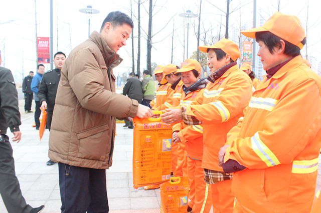 118上午,園區(qū)黨工委委員、管委會副主任、規(guī)劃建設(shè)局局長許紹杰帶隊慰問了奮戰(zhàn)在一線的城市維護(hù)作業(yè)人員,向他們送上了春節(jié)的問候。