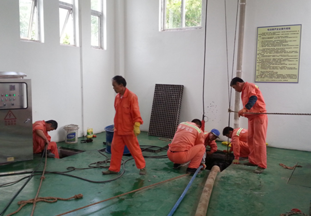 本次維護(hù)重點(diǎn)工作是泵站清淤及潛水泵檢查維護(hù)。經(jīng)過長(zhǎng)期運(yùn)行,污水泵室及管道內(nèi)積聚了大量污泥、雜物,造成淤積,影響污水泵的正常運(yùn)行。為了確保污水正常流入泵室,每半年將組織清淤一次。同時(shí),對(duì)3臺(tái)潛水泵進(jìn)行檢查,補(bǔ)充黃油,確保3臺(tái)泵都能正常運(yùn)行。